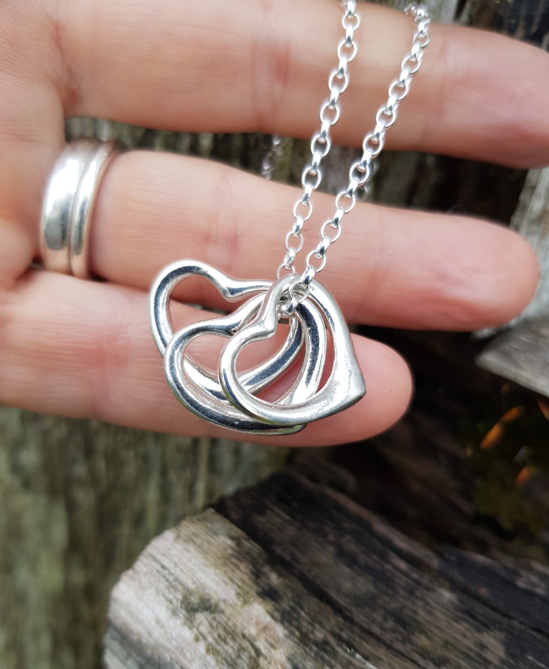 Three Arun hearts are stung on a 24″ chunky solid sterling silver Belcher chain and they are really eye catching. I love the power of three, I wear my trio of Arun hearts all the time and I am so excited to share them. I know some of you might like more than three so you can add an extra heart or two to your basket if you prefer.