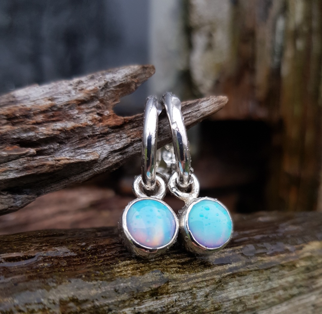 I love including Aurora Opals in my jewellery. It is a manmade material that has all the flashy magic of Aurora Borealis and of natural Opals but much cheaper and more durable.