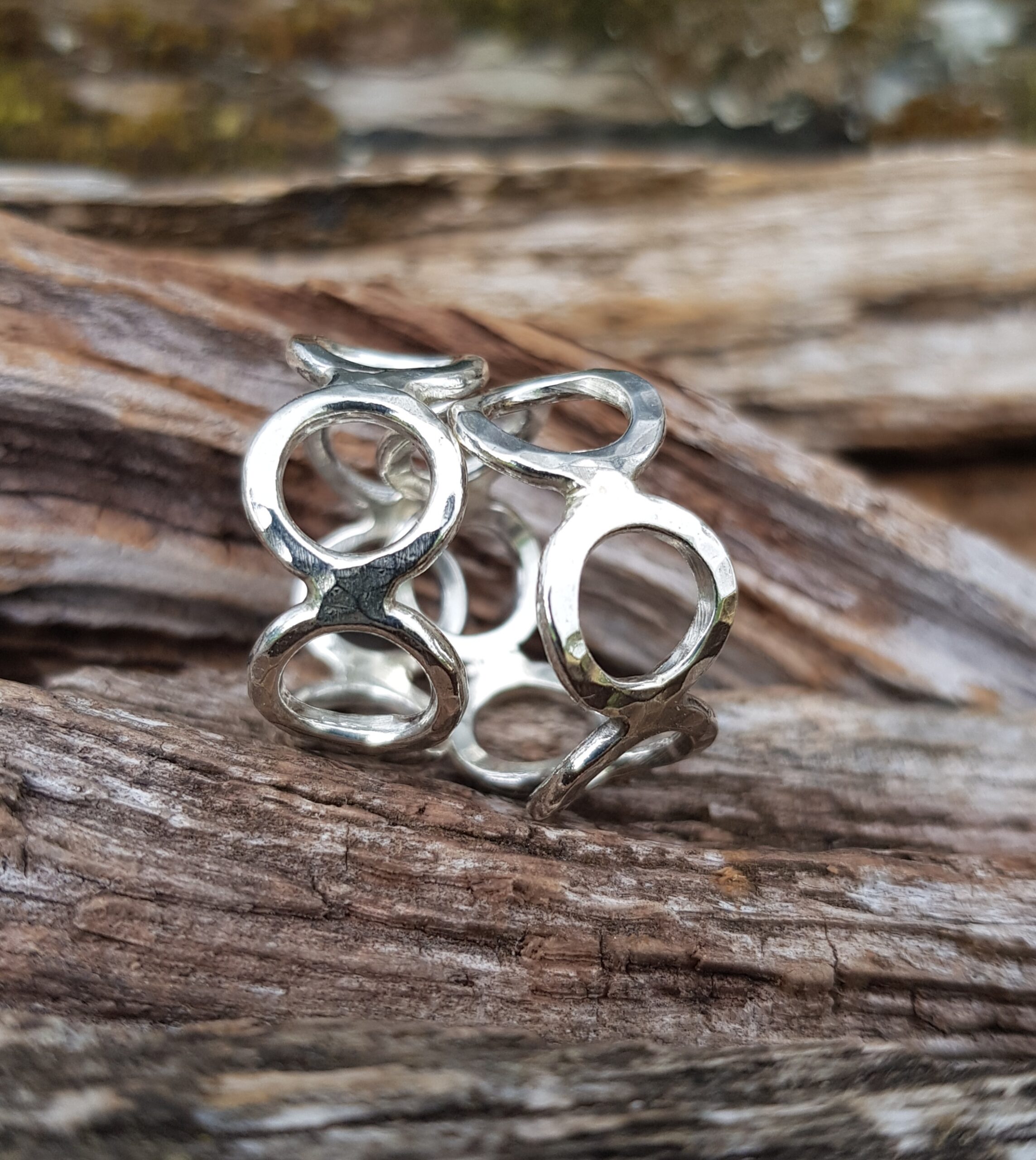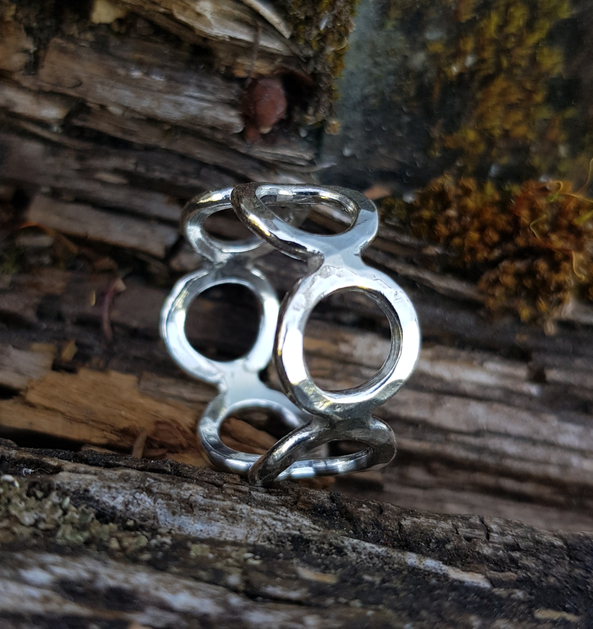 This ring started off as an experiment in thinner wire. I made one, wore it for a day (but it didn’t fit the finger I wanted to wear it on) repolished it and sold it on. A year went past and I made another one, again in the thinner wire, and I haven’t really taken it off since! I wear mine on my index finger and it really is a satisfying ring.