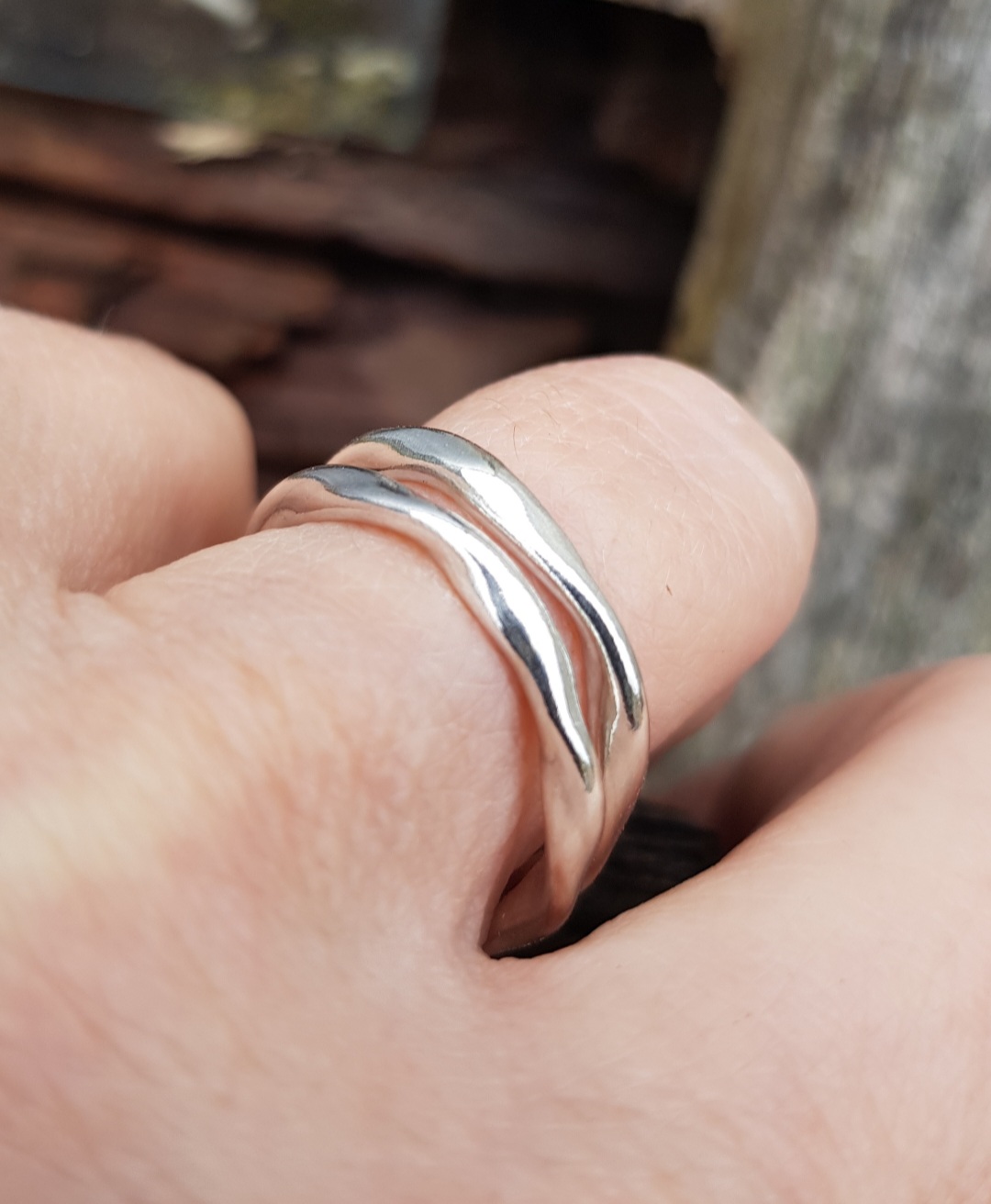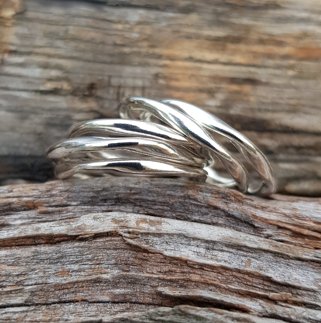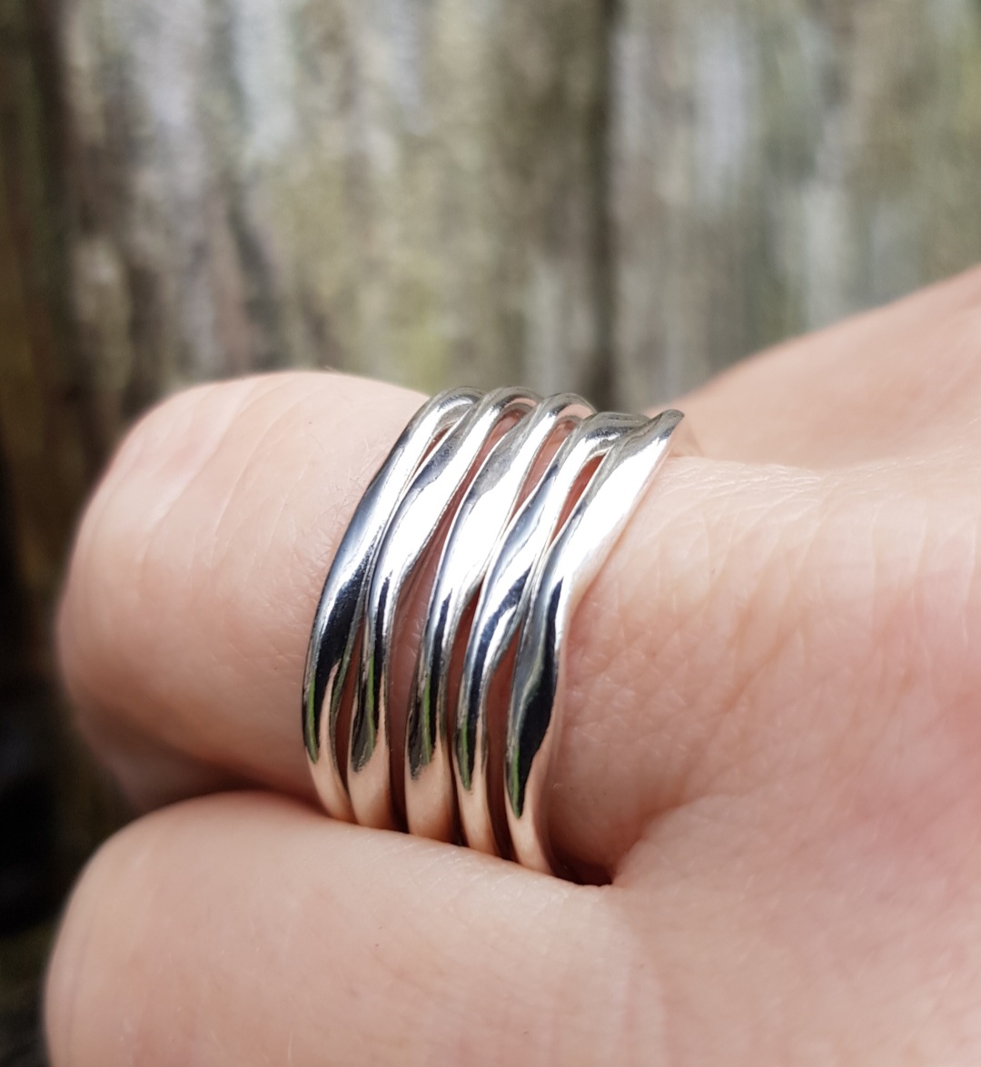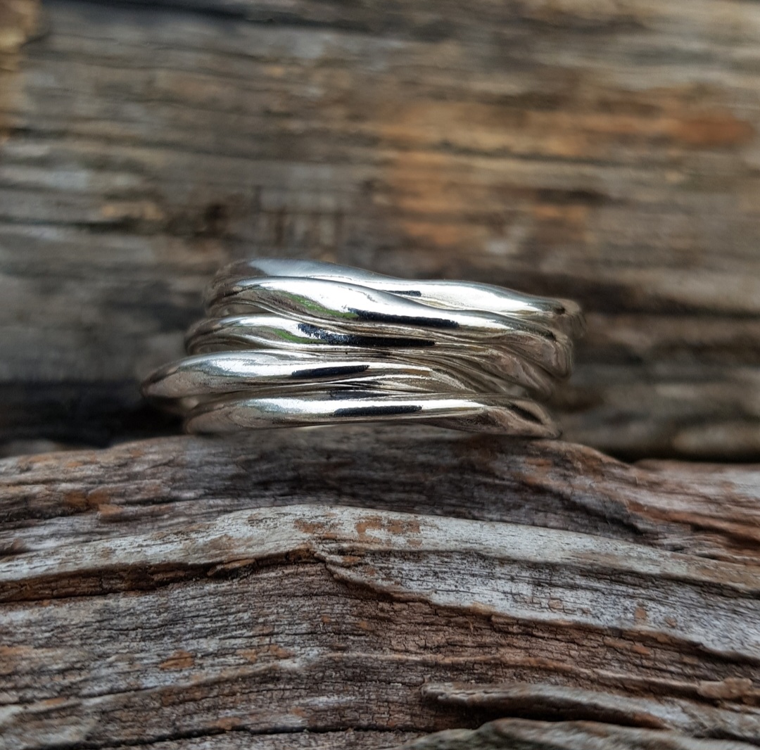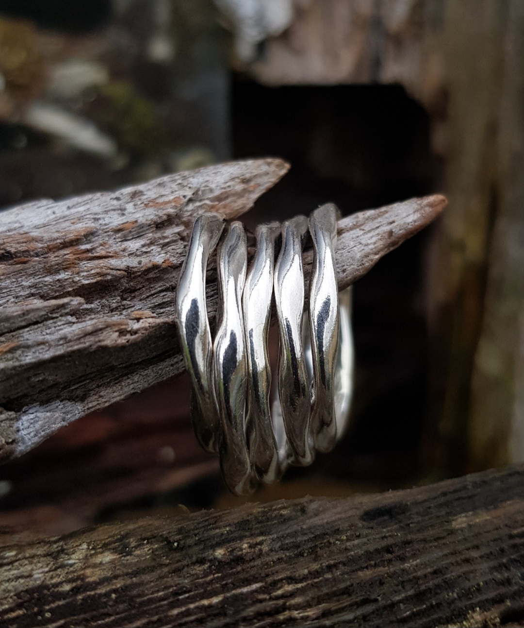 Made to your specified ring size each solid sterling silver ring is completely unique in its form and feel. These rings have a wonderful feel to them and are incredibly tactile. They stack well together in a way that traditional rings don’t, as they have movement in their solidity.