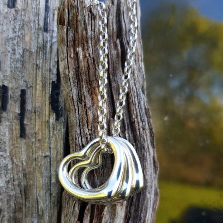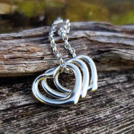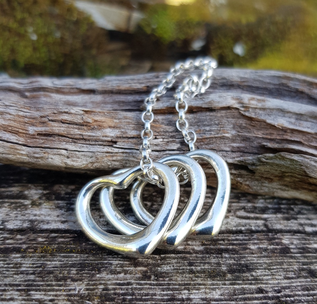 Three Arun hearts are stung on a 24″ chunky solid sterling silver Belcher chain and they are really eye catching. I love the power of three, I wear my trio of Arun hearts all the time and I am so excited to share them. I know some of you might like more than three so you can add an extra heart or two to your basket if you prefer.