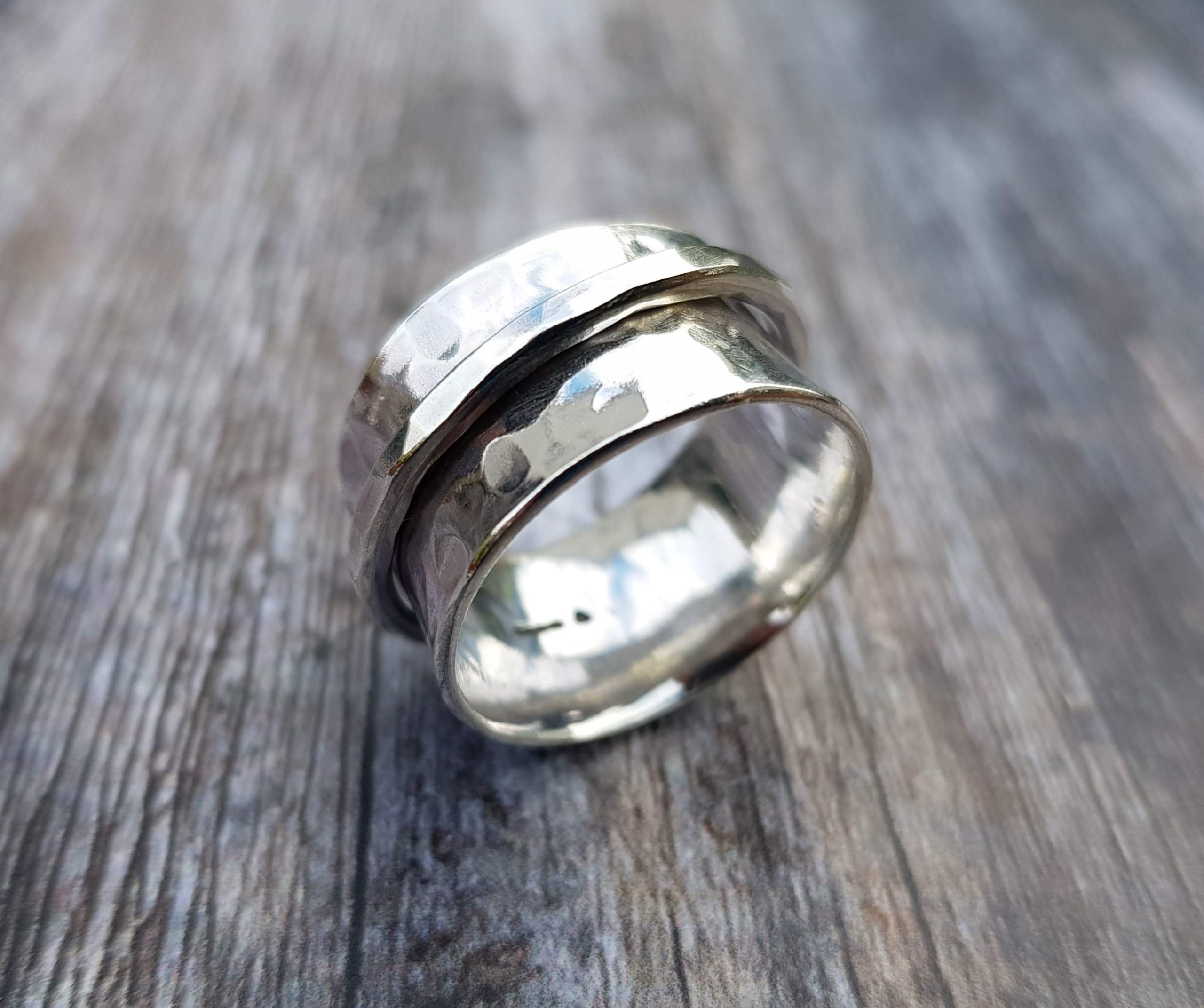 Spinning Rings are wonderfully tactile rings that originate from ancient Tibetan meditation traditions. These rings are also known as fidget rings, worry rings and meditation rings. The idea behind the design of the ring is that the wearer is distracted from any stresses or anxieties in their life with the repetitive motion of the outer ring/s rotating freely round the base ring. These rings are a fun and versatile piece of jewellery.